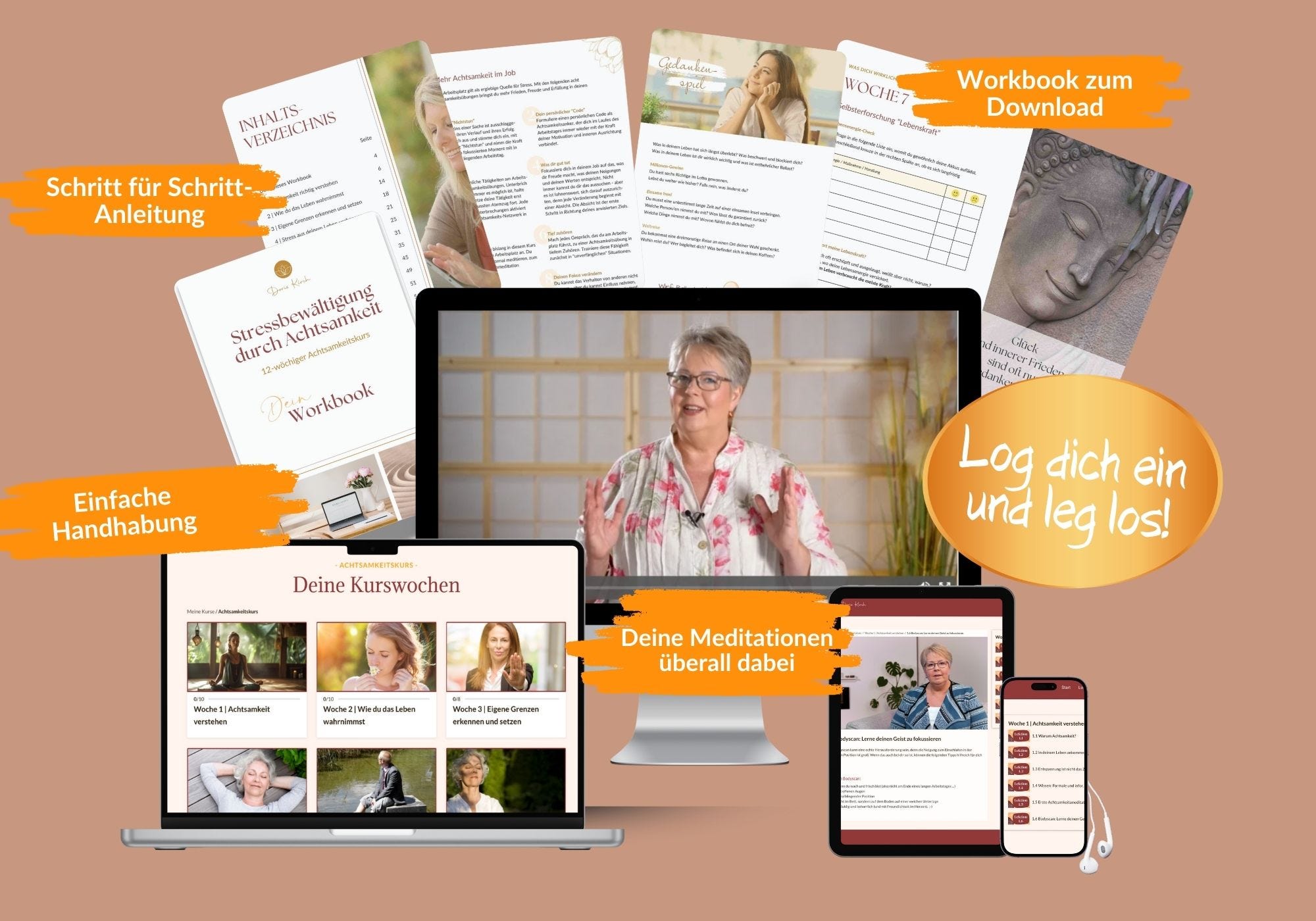 Schau dir die Videos an, höre die Audio-Dateien, meditiere und reflektiere deine Erfahrungen wann und wo immer du willst. Das bedeutet maximale Flexibilität für dich.